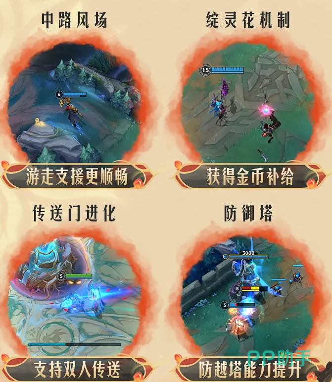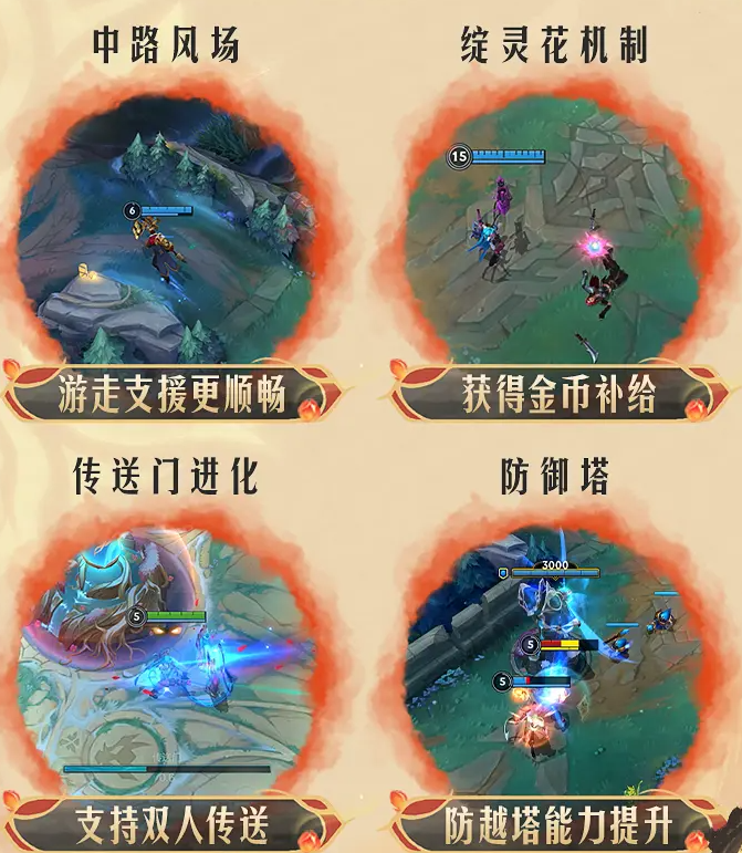 机制层面迎来多项关键回归与创新调整。远古巨龙与峡谷先锋的增益效果正式回归战场;中路新增动态风场区域,英雄穿越时获得持续移速加成,显著提升支援效率与突袭机动性;地图新增绽灵花交互元素,攻击后可获取金币奖励,强化线上经济积累能力;传送机制升级为双人协同传送,支持上单与打野、下路双人组等多场景战术联动;防御塔基础属性全面上调——攻速、攻击力与最大生命值均有明显提升,前中期越塔强攻风险系数提高,对线压制力与塔防威慑力同步增强。
