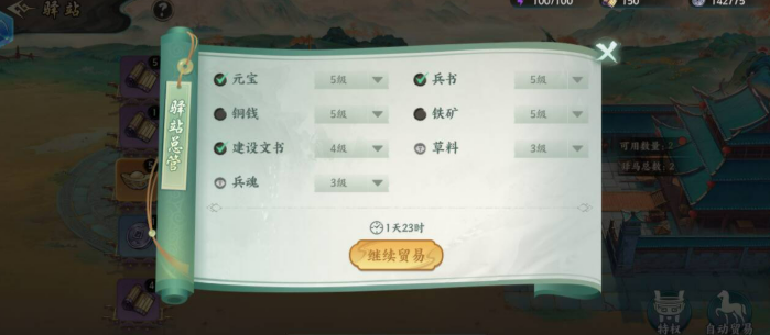 兵书在游戏前期依赖主线宝箱即可满足需求;待角色达到140级后,主线推进放缓、宝箱产出下降,此时再开启驿站5级兵书运输,性价比最优。铜钱与铁矿同理,仅推荐选择5级运输,低等级单位产出效率偏低,不建议投入体力。