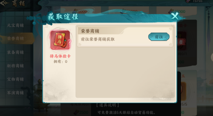 驿马体验卡为每周限领道具,激活后可享连续5天全自动贸易服务。系统将根据预设等级条件智能匹配并执行运输任务,全程无需手动操作。对于活跃时间有限的玩家而言,此功能是提升驿站运转效率的核心辅助工具。