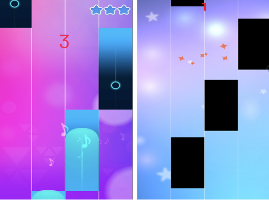 这是在音乐节奏类型中特别火爆,又很好玩的,需要玩家在玩的过程中,通过选择音乐以后,伴随着里面的节奏,通过点击黑色方块的方式,来完成弹奏,整体的音质效果非常的出色,仿佛大家真的在弹钢琴一样。想要顺利完成任务的情况下,无论你听着怎样的音乐,都需要在屏幕上正确的点击,不能点击到其他的位置上,不然会面临失败的局面。