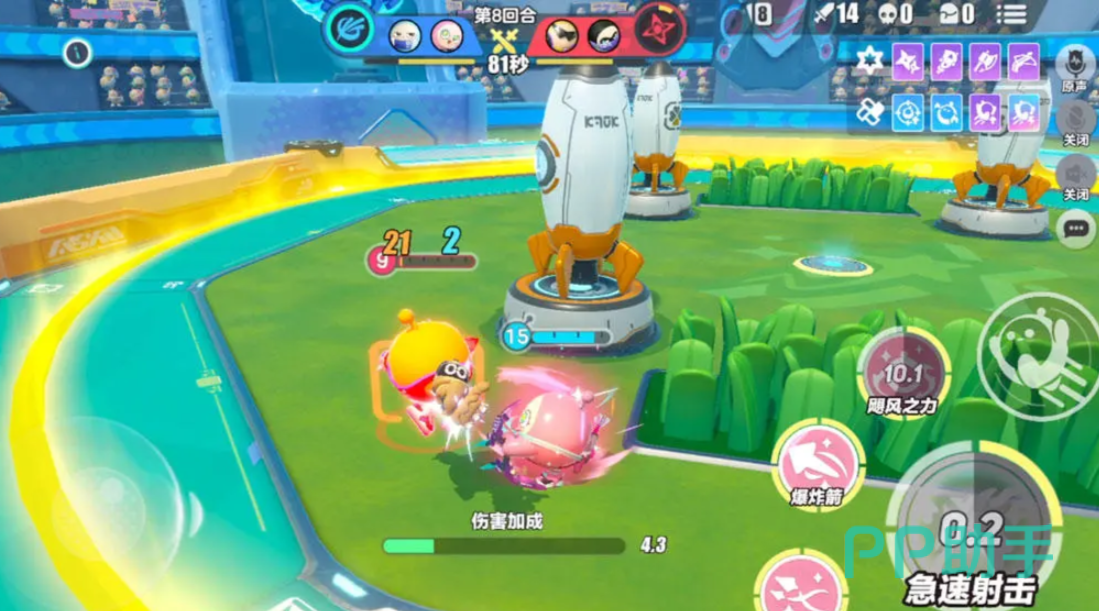 当倒计时结束后,即刻进入战斗环节。各支队伍将被传送至随机生成的地图场景内展开2V2对抗。地图主题包括但不限于太空站、工业工厂、运动场馆以及音乐舞台等,不同地形不仅带来视觉变化,更影响走位与战术布局。此外,所有场景均设有可供隐身的草丛区域及恢复生命值的补给站点,为玩家提供战略支援。
