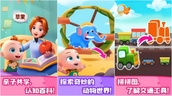 游戏创造了一个有趣的早教空间,这里有生动有趣的绘本故事,也有其乐无穷的合适小游戏,令孩子可以在此展开拼音、识字、思维逻辑的发展培养。各种趣味游戏中,结合了有趣的汉字认知、寓言故事、数字形状识别等内容,搭配上可爱灵动的动画场景,令小朋友们可以在快乐玩耍的过程中,学习丰富的知识,快乐成长发育。