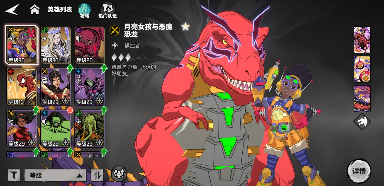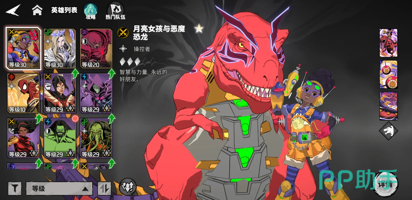 月亮女孩与恶魔恐龙、线魔等召唤型英雄,核心目标在于延长本体与召唤物共存时间。推荐“力场手套”作为基础神器,提升生命值保障存活,间接延长召唤单位在场时间。此外,“不稳定分子”带来的攻击力提升或“神宫护盾”提供的额外防御,均可有效增强本体与召唤物的协同作战强度。