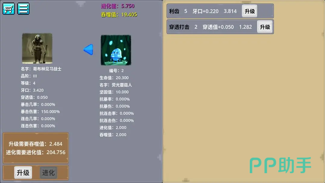 如果玩家仅仅是想要消遣,不想付出太多精力进行游戏的话。这款《哥布林进化器》就很值得你的尝试。顾名思义,在游戏当中,玩家所扮演的角色是一只拥有进化能力的哥布林,你可以通过打败敌人获得形态上的进化,也可以学习到新的能力,总体在内容上还是很有探索空间的。同时,游戏的自动战斗和挂机收菜等功能也对休闲党非常友好。