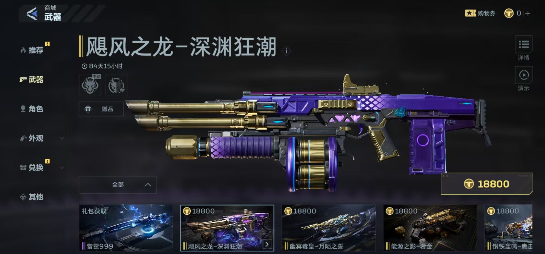 当前性价比最高的充值档位为648元,总计可获得73688点NZ点,其中包含8888点额外赠送额度。该档位足以覆盖多数高价值道具采购需求。以商城热门商品为例:售价18800点的传说武器礼包,涵盖飓风之龙、幽冥毒皇、能源之影等系列皮肤,不仅具备独特视觉表现力,更继承对应传说武器的全部战斗属性加成,在实战中显著提升输出效率与战术容错率。