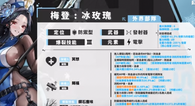 胜利女神新的希望梅登冰玫瑰技能介绍,今天就到这里和小伙伴们分享结束。这个角色的技能和形象都很优越,小伙伴们在游戏中可以考虑进行抽取,能够作为电队伍的核心打火器,我们下一期内容再见!拜拜~