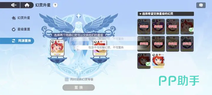 第一类为同源置换功能,本质是练度迁移而非彻底清零。适用于过渡型幻灵或低就业率角色,例如齐格飞的不同形态之间可互通星级与等级。该方式仅限同名幻灵间进行,且不受品质差异限制——即无论稀有度高低,只要名称一致即可完成转移。