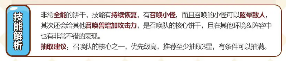 综观全部机制,棉花饼干完整覆盖四大战术维度:群体治疗、属性增益、单位召唤、硬控干扰。这种高度复合的功能性,使其成为召唤体系中的战术支点。即便脱离专属阵容,其泛用性也足以适配多种主流配队逻辑,在中后期内容推进中持续发挥价值。