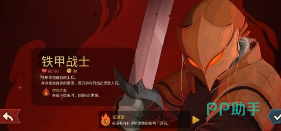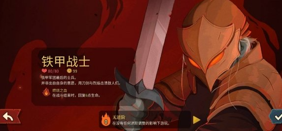 开局角色推荐优先锁定铁甲战士——这是唯一初始即解锁、且无需进度解锁的可操作角色。其基础生命值为80点,并自带“燃烧之血”遗物,该效果支持每场战斗结束后自动恢复生命,显著提升容错空间。相较之下,静默猎手起始血量较低,前期输出不稳定,对操作节奏与资源管理要求更高,不建议新手首周目选用。