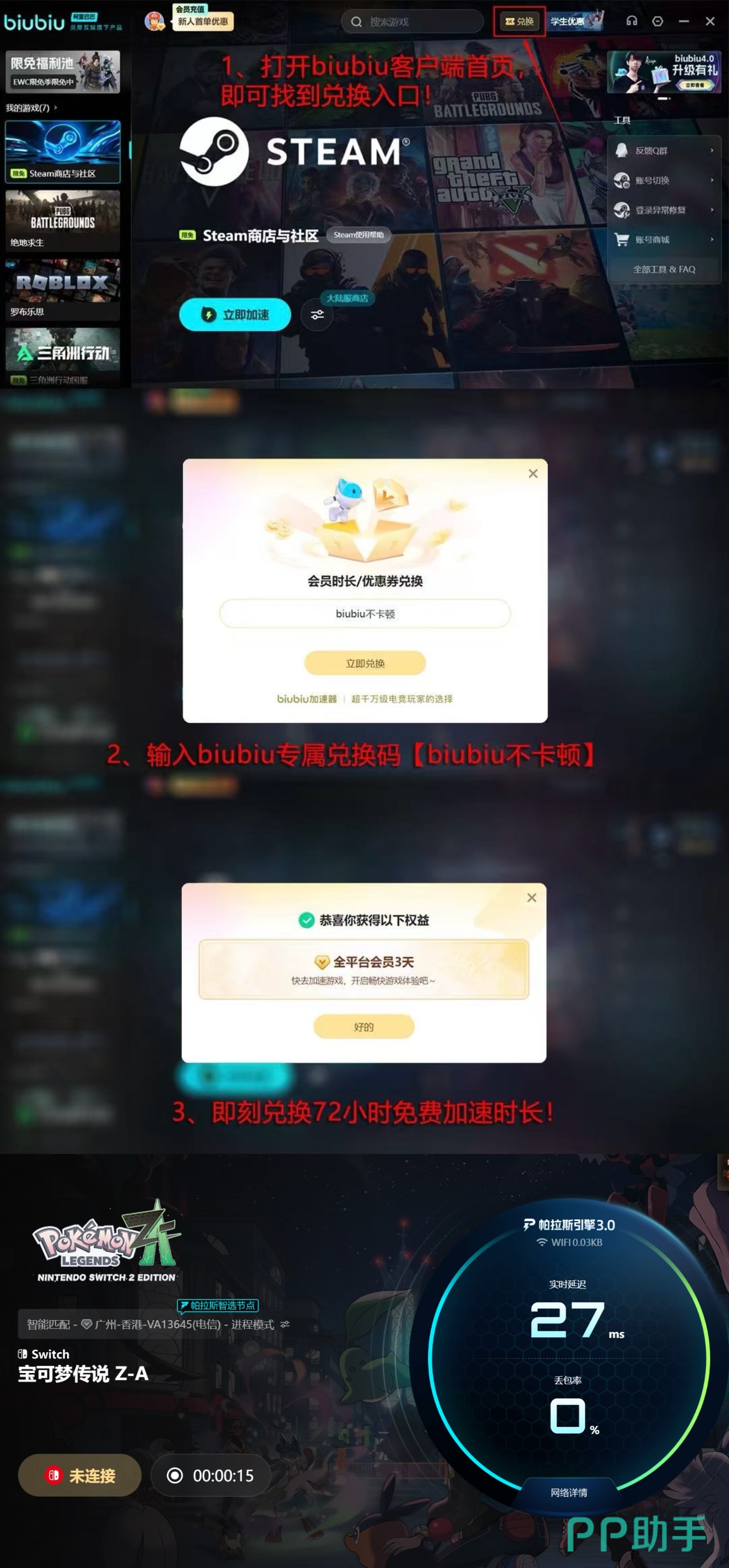 总体来看,《宝可梦传说Z-A》中大钢蛇头目的获取方式并不复杂,只要掌握正确的刷新时间与地点,或充分准备试炼所需的对战组合,并确保网络环境稳定,便有很大机会成功收服。对于常受延迟困扰的玩家而言,不妨尝试使用biubiu加速器,凭借其提供的新人福利与高效连接性能,让捕捉大钢蛇头目变得更加轻松高效。