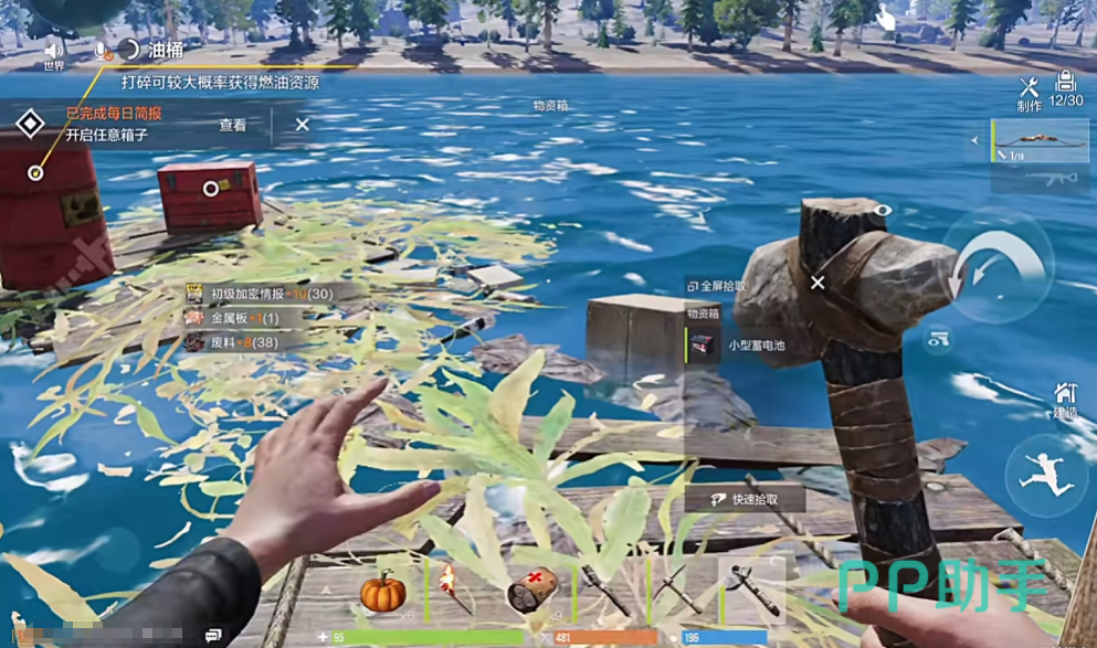 灯塔内部配备有分解机设备,玩家可通过该装置将多余材料进行拆解,回收可用资源,提升物资利用率。此外,在沙洲附近还分布着一座废弃小屋,属于1级遗迹类型,每日定时刷新基础物资,包括木材、石头以及布料等。这些资源对前期发展至关重要,可用于制作简易武器、搭建庇护所,布料还可用于合成保暖类装备以应对恶劣天气。