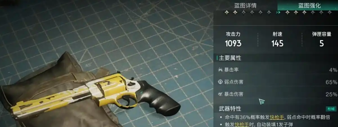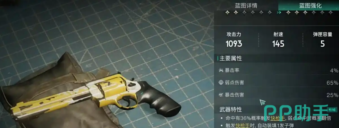 喜欢射击类游戏的玩家都知道像手枪这类武器的伤害肯定没有其他的枪类更强,可是七日世界中临别礼却打破了这个限制,临别礼是一把有着比较不错伤害的手枪类武器,它不仅有何极高的射击伤害,同时若是打到了敌人的弱点上面,还会有36%的概况v能够把快枪效果给触发,回弹的数量也会增加。