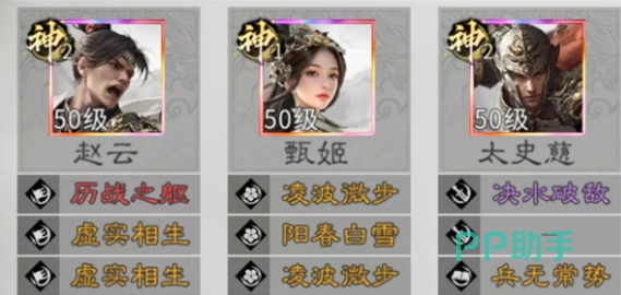阵容铁三角为赵云、太史慈与甄姬。其中赵云为绝对主核,其主动技【历战之躯】提供基础闪避加成与三目标嘲讽效果,被动技【七进七出】则赋予“每次闪避或受击后立即发动反击”的双重触发机制——且闪避成功时额外附加群体伤害,使他成为全队承伤、输出与节奏控制三位一体的关键支点。因此,全队资源倾斜方向明确:优先提升赵云统帅属性,统帅越高,闪避收益越显著。