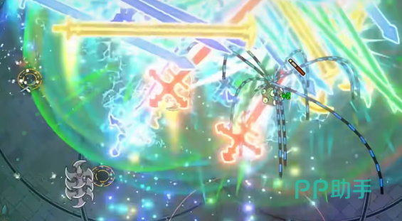 在武器选择方面,建议优先配备具备穿透特性的法杖。这样一来,破魔剑的飞行轨迹可贯穿前排直击后排目标,在面对密集小怪群时清理效率极高。当所有组件齐备后,玩家便可尝试施放技能,届时画面中将出现大量巨型破魔剑横扫战场,视觉冲击力极强。这种巨剑并不仅仅是外观炫酷,在实际战斗中同样扮演着重要角色,不仅能打出高额伤害,还能凭借穿透特性有效阻挡来袭弹幕,形成一道攻防一体的坚实防线。玩家可安心进行持续输出,无需担忧被敌人突袭。