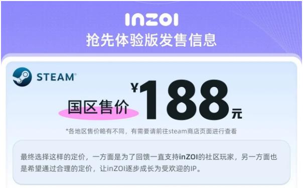 INZOI多少钱?看完以上的介绍,玩家就已经知道这款游戏的价格是188元,喜欢这款游戏的朋友就别错过,可以抢先去体验游戏,感受一下游戏的精彩体验。