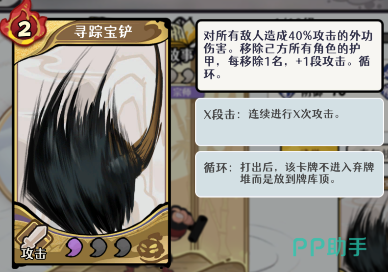 该流派的核心运转逻辑在于“叠甲—爆甲—连锁响应”。关键依赖万里寻踪的专属卡牌【寻踪宝铲】:每当己方任一角色失去1层护甲,即对全体敌方单位发动一次基础攻击;若通过技能提前为全队(含自身)叠加多层护甲,则一次性引爆全部护甲层数,可达成4次以上连续群攻。配合低费护甲卡与高频率抽牌手段,整套流程可反复启动,形成稳定输出闭环。新手玩家若希望快速掌握各类流派构建逻辑,建议参考九游平台发布的深度战术指南。