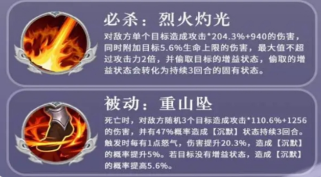 张郃的“五毒嗜血”以持续压制见长,命中后立即触发范围伤害,并使目标陷入持续3回合的中毒状态。该效果不依赖攻击频率,而是通过稳定叠加深层消耗,在敌方前排减员或防御体系松动后,加速瓦解其续航能力,形成滚雪球式战术优势。