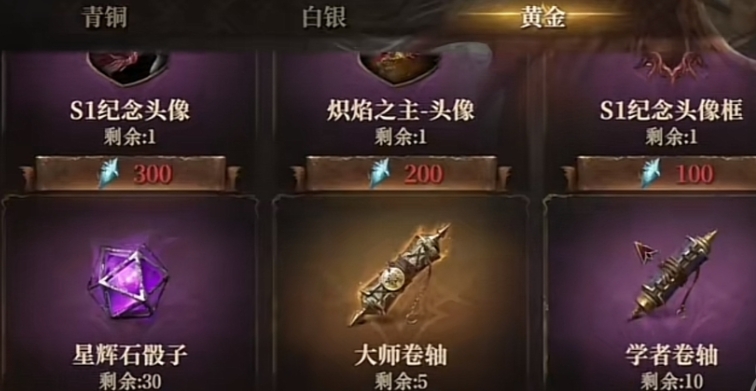 也可以首先考虑兑换日芒石骰子、大师卷轴等稀有资源,其次是限定英雄,如果大家对某个限定英雄情有独钟或者有自己的游戏策略需要围绕其展开,也可以进行兑换,竞技商店的幸运牌组、季中商店紫骰子、蓝紫技能书则可以在大家换道具资源较为富裕的时候适当兑换一些,而其他消耗类材料的优先级则相对较低,包括龙髓石在内,因为它们可以通过多种途径获取,不必过于依赖商城兑换。