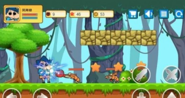 蜡笔小新大闯关是画风超级温馨卡通的横版冒险类作品,个性化的闯关过程与日系背景都是主要亮点,操作性质完善可作出各种战斗、跳跃动作,主角都是蜡笔小新中高知名度的角色很有辨识度,与地图上的动物战斗并拾取星星也是主要的任务,美观简洁的卡通UI跟灵动视觉效果值得大家体验。