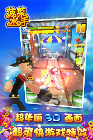还记得儿时那位体魄强健,食用菠菜后战力飙升的硬汉吗?还玩家将携手主角,勇斗邪恶海盗团伙,解救被囚的伙伴!此外,主角还意外汲取了神秘能量,只需换上风格各异的服饰,就能解锁种种超凡能力!游戏内场景丰富多变,跑酷途中障碍重重,更有激烈战斗等你挑战,快来与主角一同开启这场惊险刺激的冒险之旅吧!