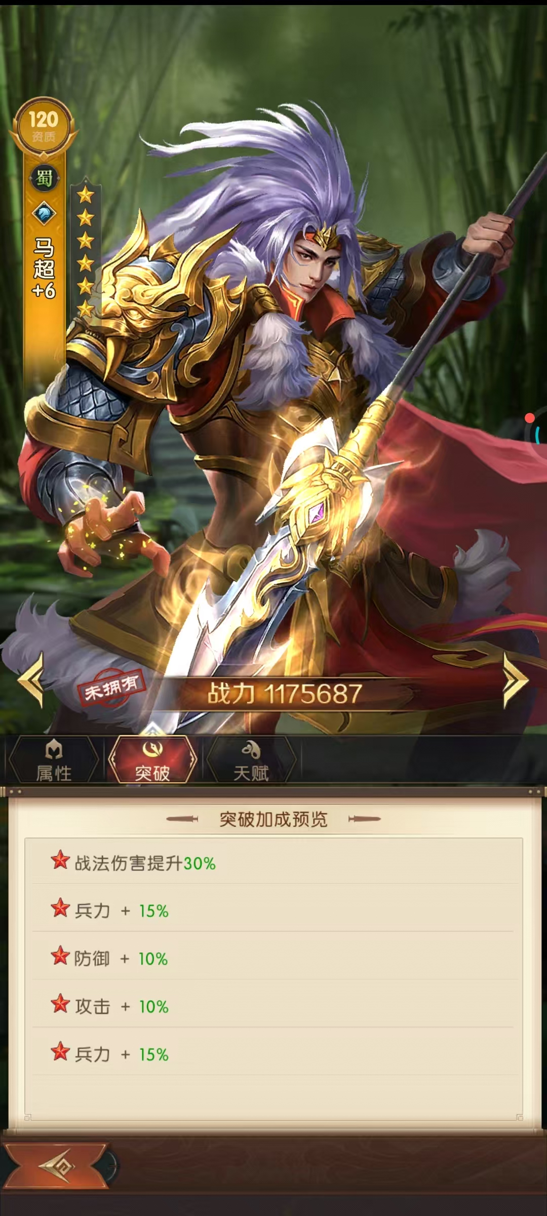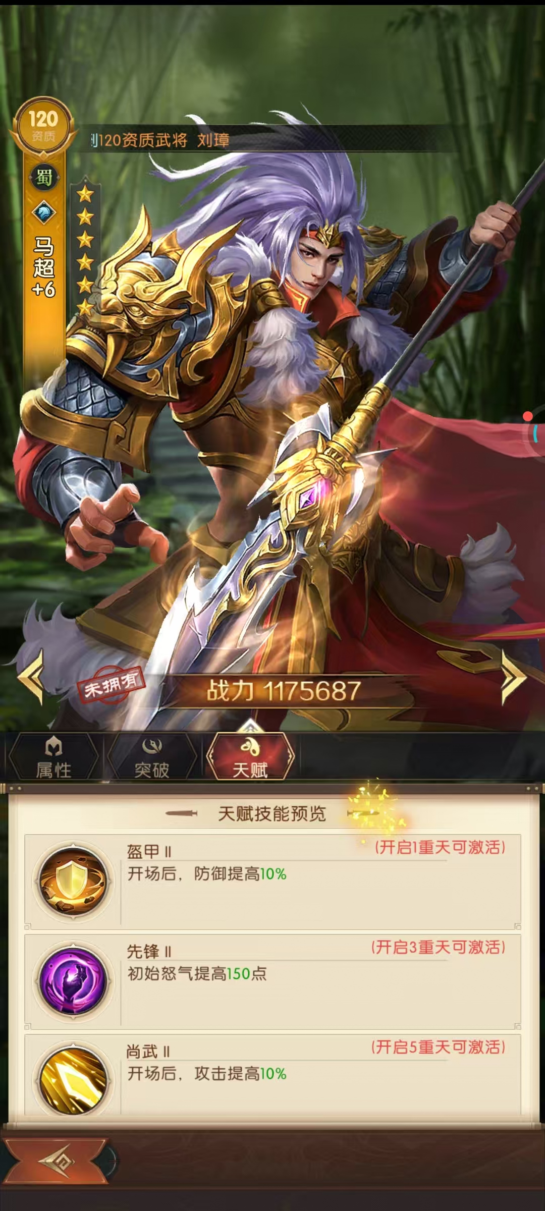 马超作为《三国问鼎山河》中兼具输出与生存能力的核心武将,其技能机制与阵容搭配需围绕连击回怒与单体爆发展开。他的战法「横扫千军」能对纵排敌人造成427.5%攻击伤害,若仅命中单个目标时伤害翻倍,配合「威名」技能在触发连击时额外增加100怒气,可快速提升战法释放频率。同时,「迅捷」提供的25%伤害治疗效果与「龙首」「坤地」带来的暴击率及暴击伤害加成,使马超在输出的同时兼具续航能力,适合作为前排抗伤输出。