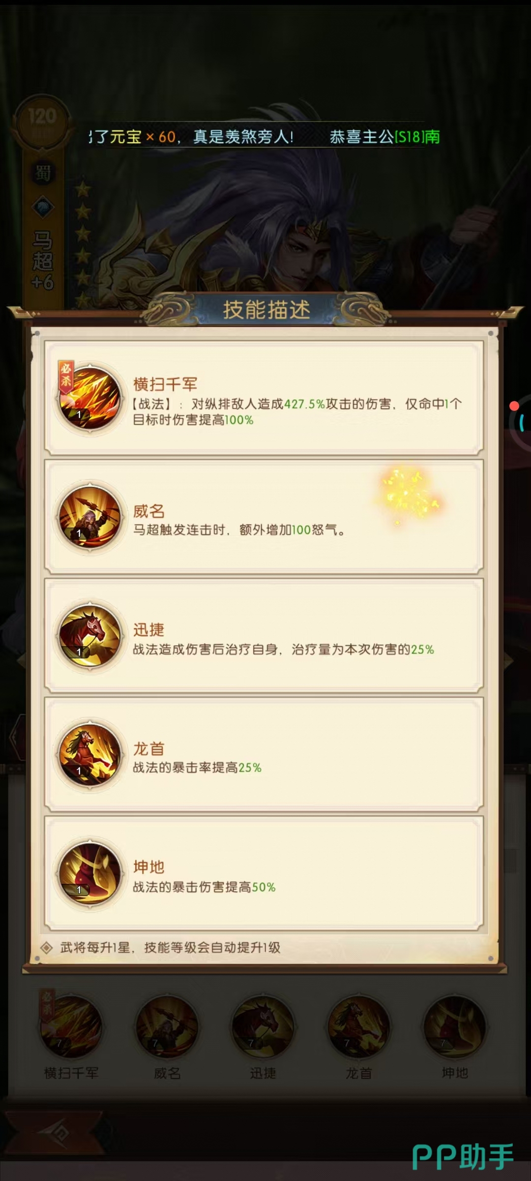 以上就是三国问鼎山河马超攻略。建议优先升星解锁全技能,搭配黄月英、黄忠构建蜀国连击体系,装备宝石强化暴击与治疗属性。实战中集中攻击单体触发伤害加成,合理分配资源参与跨服战、军团战获取碎片。让玩家对更加理解,玩起来可以得心应手。