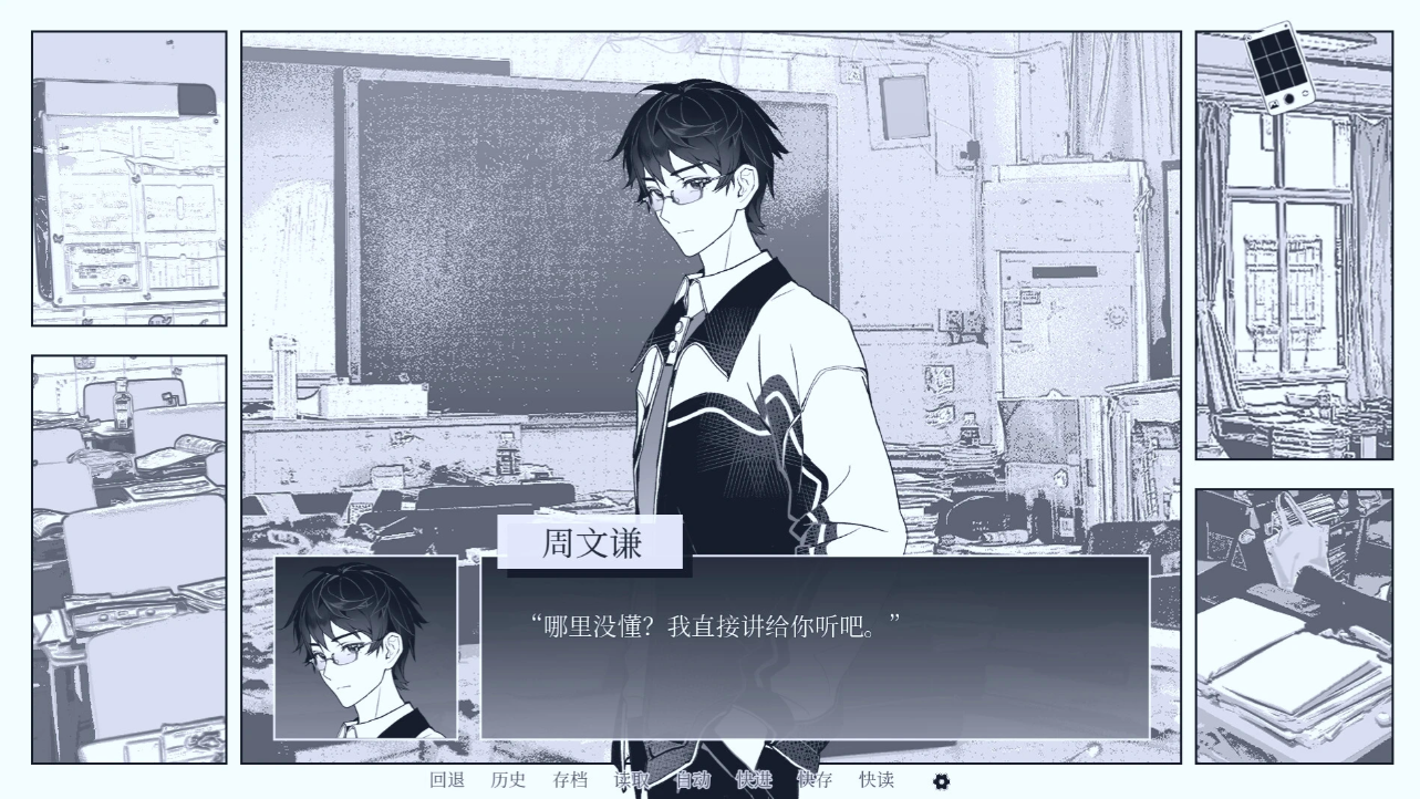 本作深度融合中式家庭关系与高中校园生活两大现实母题,构建出一部具有强烈代际共鸣的黑白视觉小说。全篇采用手绘素描风格呈现,场景涵盖教室、走廊、放学归途等典型空间,文字叙述兼具文学性与留白感,唤起玩家对青春期记忆的深层共振。游戏中嵌入多线解谜要素,玩家需通过观察细节、触发对话、梳理时间线索等方式推进剧情,在重温青涩情感的同时完成逻辑闭环。