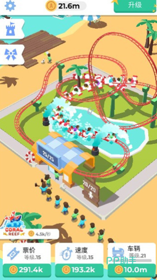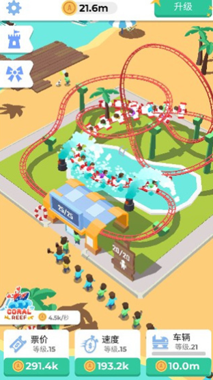 构建了一座不断壮大的游乐帝国,轨道在空中交错延展,列车载着游客冲上高点,随即俯冲而下,速度与重力交织出惊险刺激的旅程。乐园的扩张不仅依赖轨道的延伸,更考验经营策略,每条新增的赛道都影响着游客流动与收益增长。资金积累推动设施升级,列车载客量、行驶速度、轨道复杂度层层递进,使游乐园从简陋的场地演变为繁华的娱乐中心。
