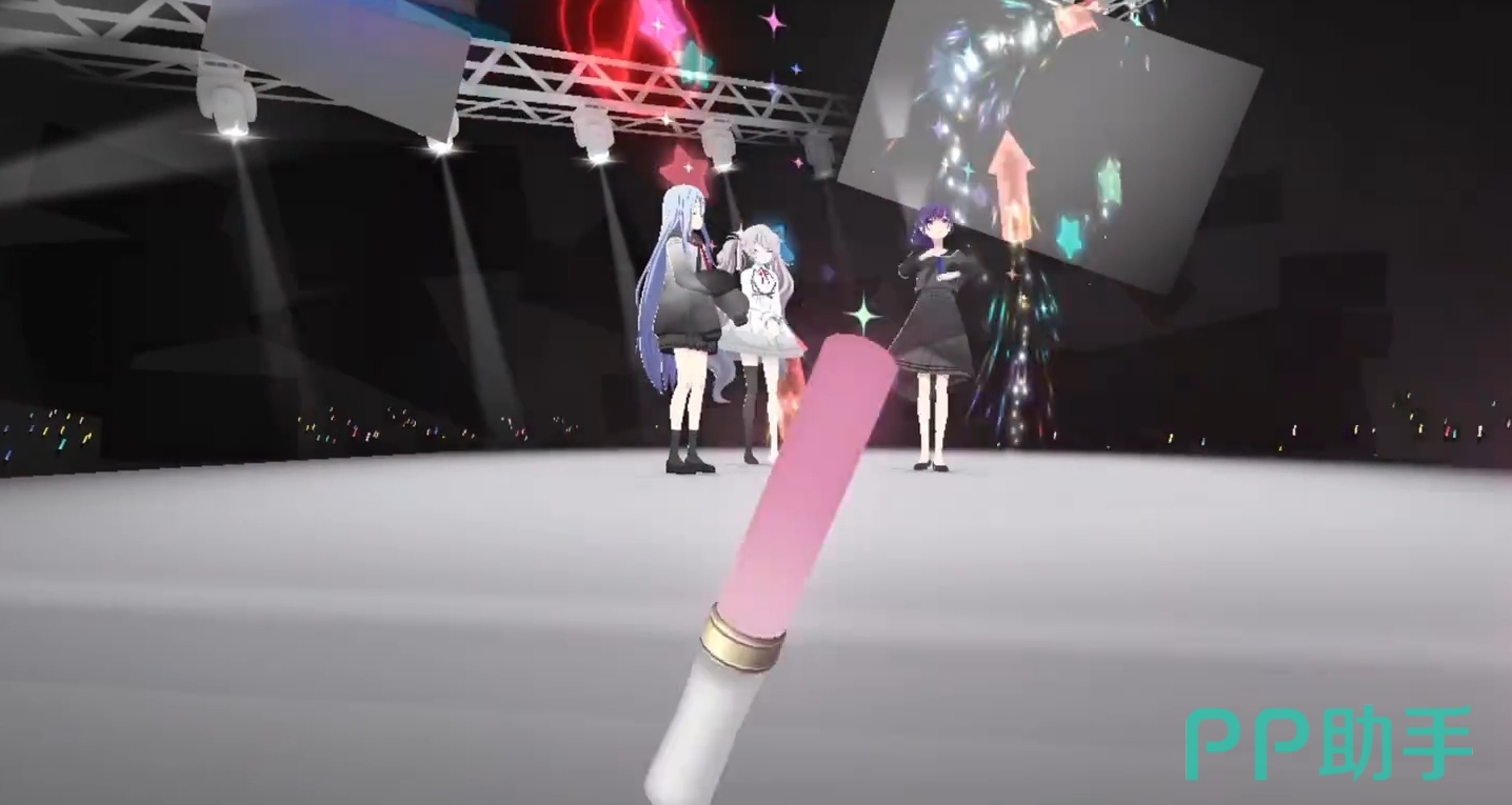 待演唱会开始后,玩家们都将获得一个非常不错过的观看位置来欣赏演出,且手里还将拿上荧光棒来为偶像应援。荧光棒可通过虚拟按钮来做出左右晃动等动作,实际体验起来会有着很真实的舞台氛围感。同时,各位还能发送各类表情来为演唱会增加气氛,这些表情发送后其它玩家也都会实时看到。