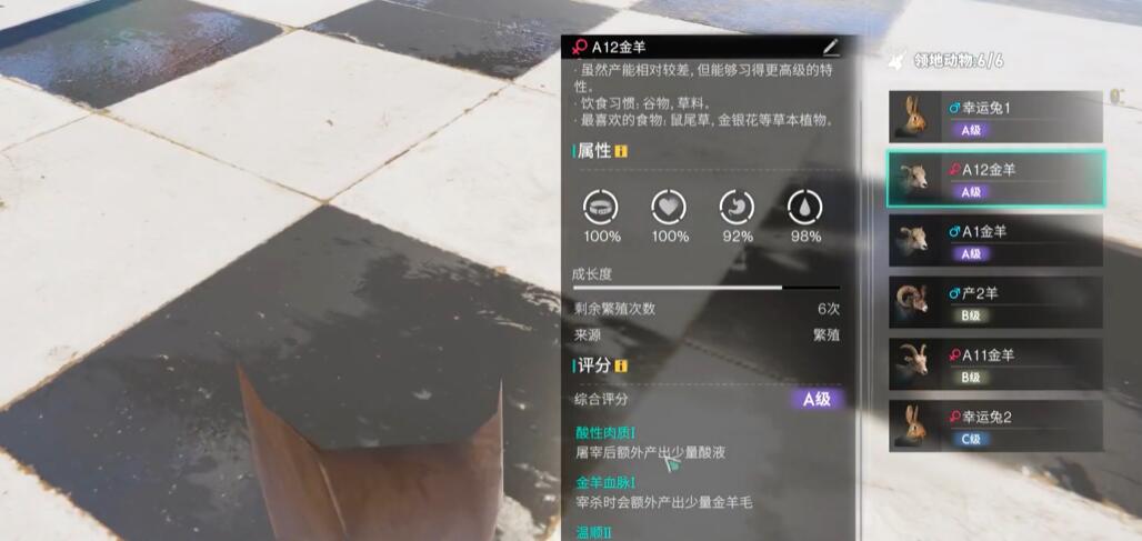 游戏内动物词条分为资源型(如精肉、羊毛)、战斗型(暴击率提升、防御强化)、功能型(驯服消耗降低)三大类。C级动物:仅有1个词条,遗传概率100%,适合作为初始种源定向培养。B/S级动物:多词条但遗传随机性强,需消耗更多资源筛选。 核心策略:优先捕捉携带目标词条的C级动物(如精肉1),通过稳定遗传快速建立基础种群。
