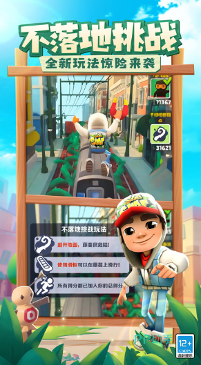 《地铁跑酷》刚上线时只是简单的单机游戏,如今玩法有了大升级,新增了联机模式,玩家能邀请好友一起,在各国地铁场景中展开刺激的跑酷对决。这款带有美式街头风格的游戏,还推出了不落地挑战这种全新玩法,紧张又刺激。不仅如此,它还和机甲元素相结合,圣剑机甲等全新角色闪亮登场,现在又和猪猪侠开启联动,让大家能体验充满童真童趣的跑酷之旅。