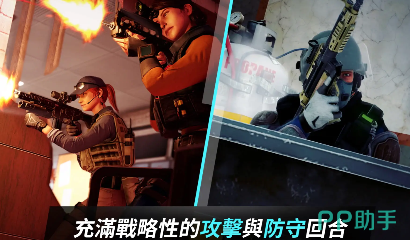 区别于传统快节奏FPS,《彩虹六号M》强化战前部署与动态指挥双维度设计。每回合开始前,双方可使用战术平板标记关键区域、设定行动路径、分配干员职责;交火过程中需持续切换视角、共享情报、即时调整布防策略。任何缺乏协同的单兵突进行为都将显著降低胜率。