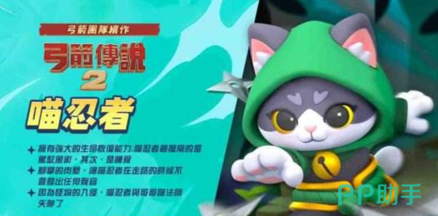 喵忍者在弓箭传说2这款游戏当中是相对独特的,因为它拥有蓬松的尾巴,还能够释放奥义技能,它的脚掌肉垫上,在走路的时候能够发出声音,不过很多玩家对于弓箭传说2喵忍者技能方面的内容特别的感兴趣,既然这个样子,下面小编就针对这方面的内容做相关的介绍,让玩家对喵忍者更加了解。