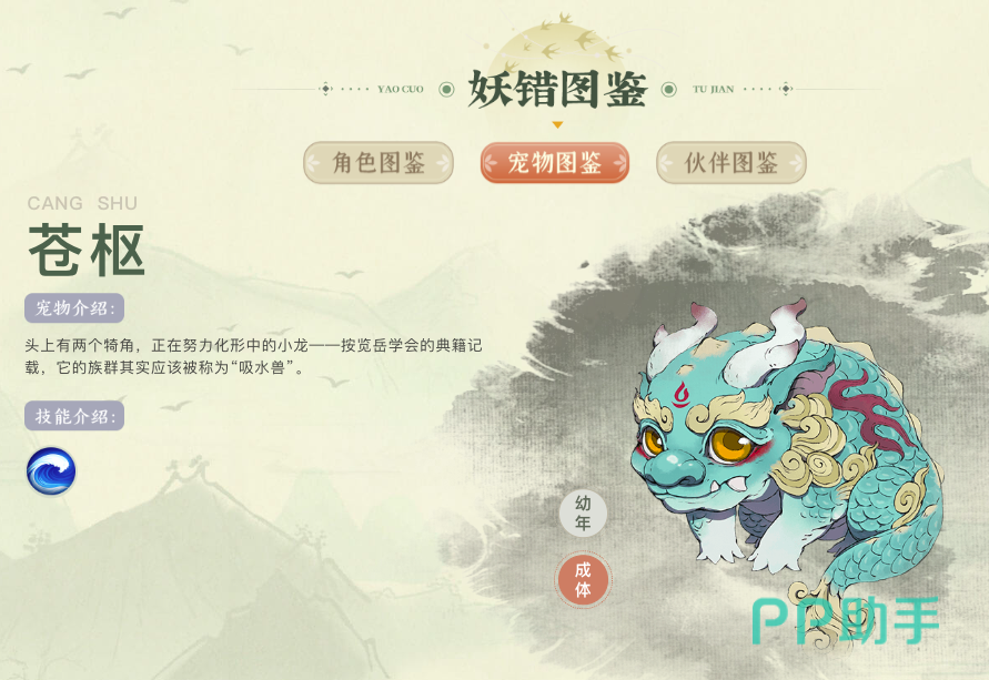 苍枢——水系成长型战略单位,原型出自《山海经·大荒北经》“其状如牛,两角参天,善引潮汐”。幼体呈青鳞鹿形,栖息于湖泊沼泽;成体化龙后转为墨鳞蛟相,活动范围迁移至近海礁盘区。核心机制为【惊涛巨浪】:释放后生成持续12秒的环形潮域,对范围内敌人施加每2秒1.8%最大生命值的水属性伤害,并为友方单位提供8%减伤与3%治疗强度提升。该灵兽具备双阶段培养树,幼体侧重控场,成体强化持续输出与团队增益。
