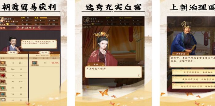 该游戏是一款内容非常丰富的,皇帝养成类游戏,玩家在游戏的初期,将会成为一个刚刚登基的小皇帝,而这个皇帝如何成长,便全凭玩家自身的操作。例如玩家如果重视这名皇帝的武功的话,便能够让这名皇帝,获得极强的武力值,而玩家如果想要获得更为广阔的领土的话,还可以跟随将军,积累打仗的能力,从而用战争的方法来扩张哦!
