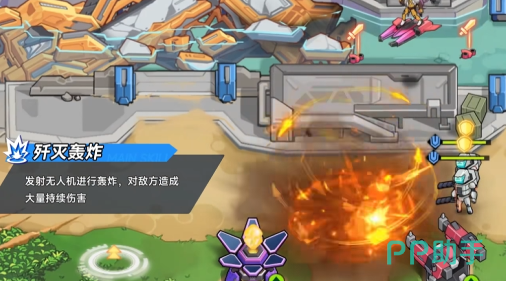 伊莉丝的战场定位为高机动性远程输出,擅长应对多变的敌方进攻路径。尤其在面对空中单位频繁袭扰的情况下,她能凭借独特的技能组合有效遏制来自空中的威胁。其核心技能“歼灭轰炸”可召唤无人战机对指定区域实施精准打击,具备高额范围伤害。当敌方飞行单位接近防御塔时,释放该技能可迅速清空空中目标,最大程度减少建筑血量损耗。