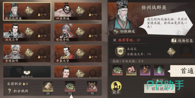 首关为“董卓追捕战”,但参与前提是在主线剧情中完成虎牢关之战任务节点,方可激活该挑战。此关对阵容搭配要求较高,若贸然使用铁骑兵种可能陷入被动。建议玩家等级达到21级后再行尝试。推荐配置以铁装甲骑兵为核心单位,配合张辽增强前排压制力,同时配备谋主诸葛亮,利用其控制技能有效反制敌方输出,从而提升通关成功率。