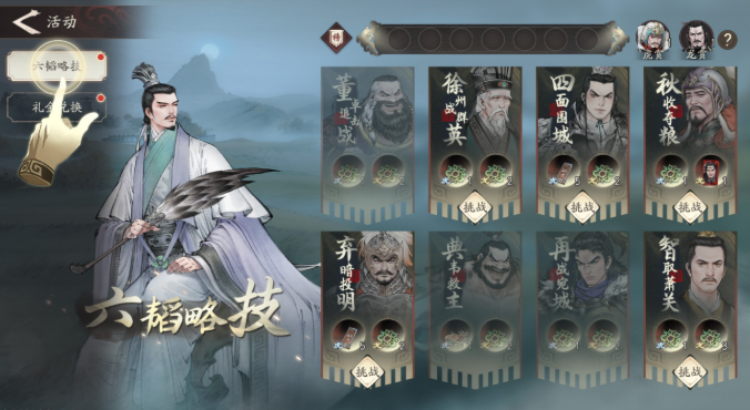 在三国望神州这款策略类手游中,随着玩家等级的逐步提升,各类特色玩法会陆续解锁,其中就包括备受关注的六韬略记挑战模式。这一玩法属于进阶内容,在主线推进到指定进度后方可开启,整体结构类似于独立副本系统,内含多个章节供玩家逐级攻克。