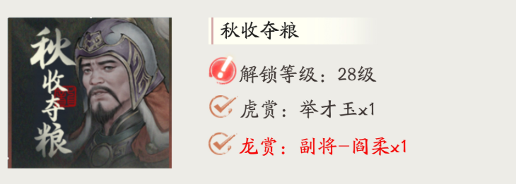第四关“秋收夺粮”要求玩家至少具备28级基础战力,该任务聚焦于资源争夺,强调快速反应与精准布阵。最佳战术为弓骑联动:利用骑兵高速机动特性冲击敌方阵型,打乱其防守节奏;与此同时,后排弓箭手占据有利位置进行远程火力覆盖,完成收割。站位方面推荐采用四面包夹形态,最大化输出效率。