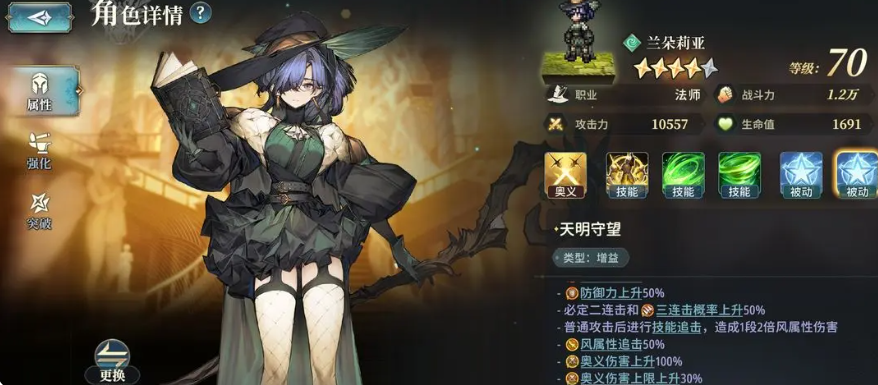 阵容构成固定为四人:主角(法师)、兰朵莉亚(辅助)、米蒂尔(主C)、弗洛拉(前排承伤+buff增幅)。其中主角承担全队能量供给中枢职能,其4技能“凛风之契”连携机制直接决定整套体系的启动效率;兰朵莉亚作为核心功能型辅助,提供生存保障与状态加速,尤其在中后期可显著缩短爆发窗口;米蒂尔是唯一具备多段叠加被动“青之驻足”的角色,其2技能需在满7层“青之驻足”下才能激活20段连续风属性伤害;弗洛拉则负责前排站位吸收伤害,并通过一技能协同主角触发初始“凛风之契”,同时持续叠加队伍buff层数。