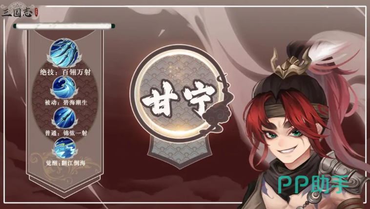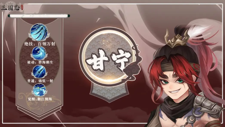 甘宁在此阵容中承担核心单体爆发职能。其技能具备血量越低伤害越高的反向成长特性:敌方当前生命值越少,或我方单位处于低血量状态时,甘宁触发的额外伤害加成越显著。该机制使其在中后期战局焦灼阶段尤为强势,配合周瑜的护盾保护与陆逊的控场,可精准收割残血目标。