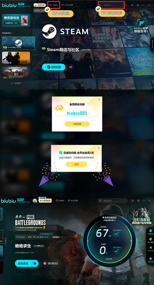 新用户点击以上的链接之后,完成下载以后就有一个24小时的免费加速时长。兑换码【biubiu001】还能在原本的基础上又延长3天的时间。对于新用户而言,就可以免费长达96小时。这一个加速器所选择的就是帕拉斯2.0加速引擎。凭借电竞级别的加速能力,对于广大电竞玩家而言就可以提供优质的服务。