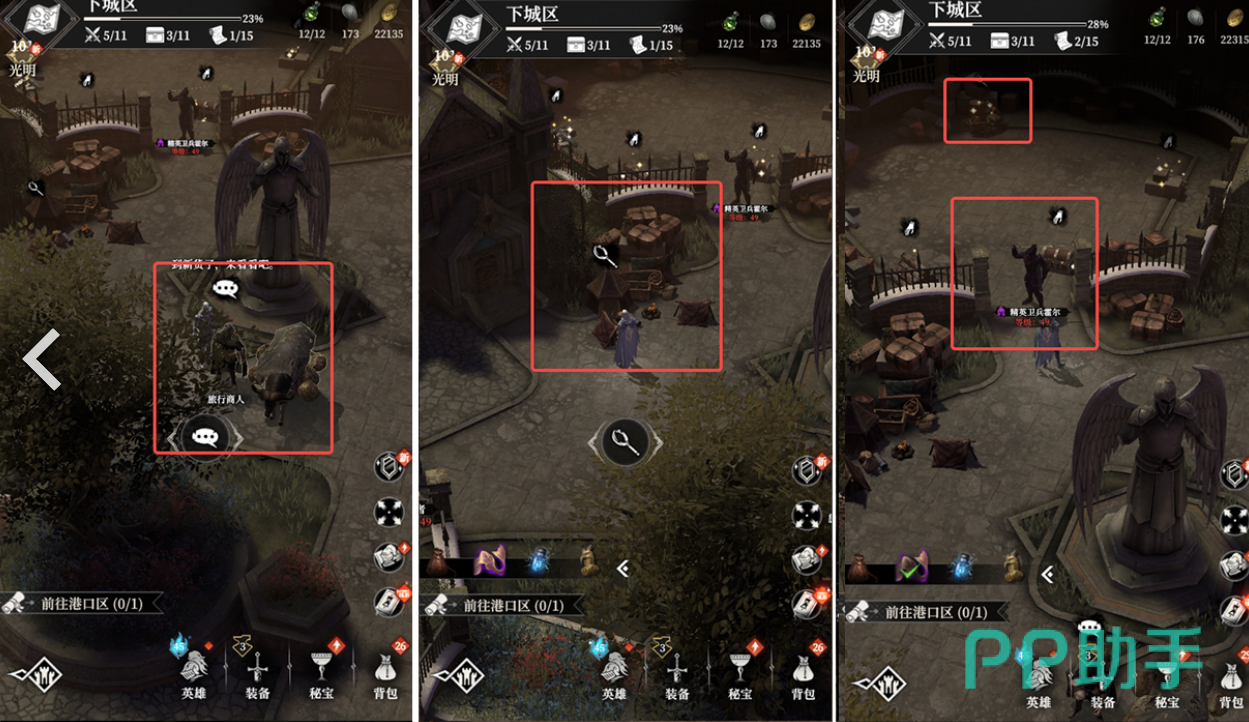 在队伍配置方面,推荐前排部署盾兵承担伤害,后排安排法师输出。若拾取到多余或高品质装备,可出售给珍宝商人换取资源;锈迹斑斑的盔甲则适合卖给旅行商人。值得注意的是,下城区存在多个隐藏事件,其中装备库钥匙的获取尤为关键。建议派遣战力较高的角色执行搜寻任务。集齐材料后可合成“海上勇者之刃”,该武器在中后期具备强大攻击属性,堪称神器级装备。另外,在执行水手任务时,需前往左侧营帐寻找货箱,此环节对角色强度有一定要求,避免因战力不足导致进程受阻。