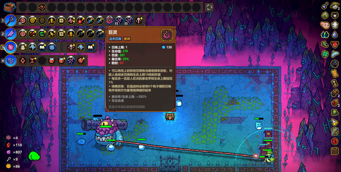 对于魔导书套娃等召唤体系而言,精魄的作用同样不可忽视。它可赋予魔导书瞬移能力,使其迅速覆盖全场关键区域。与此同时,光支柱在精魄加持下亦能触发连锁伤害效果,进一步扩大控场范围。此时玩家需合理调度各召唤单位,最大化协同作战效能。由此可见,精魄作为核心增益道具,在整体战术布局中扮演着至关重要的角色。