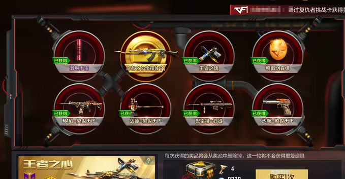 如果大家想要获得这款皮肤的话,那么大家可以点击左侧的抽奖玩法,找到【王者之心】抽奖界面,在这个地方大家可以看到主题是王者之心【火麒麟】和【黑武士】这三个礼包!玩家们每次抽取的话,都会获得一个额外的箱子,这个赠送的详细打开的话,是百分百会出100个黄金风之子的碎片的!