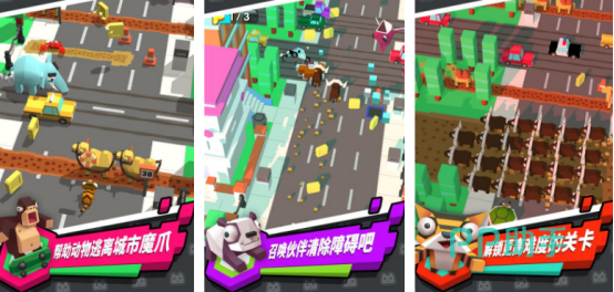 采用3d的像素风格进行创作,将模拟养成以及极速跑酷的玩法巧妙融合,其中有各种各样炫酷的小宠物,玩家可通过随意操控宠物的方式顺利完成跑酷,色彩缤纷的画面,将会让玩家有种眼前一亮的感受。必须要通过顺利逃离的方式离开城市。