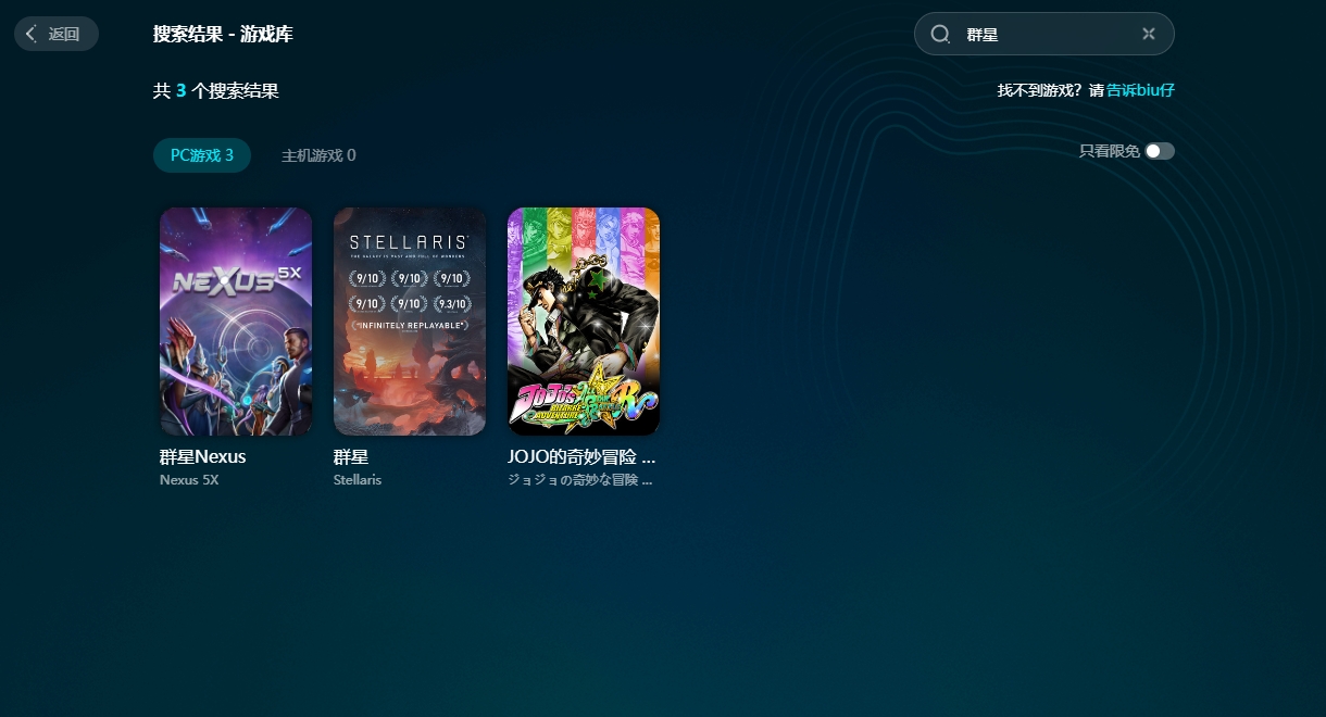 而且它还能精准定位我们游戏的服务器所在地,配合专属高速网络通道进行直达传输,大幅度降低我们游戏服务器切换所带来的丢包和延迟等问题。为了让大家的游戏体验都能更加的丰富,biubiu还打造了限免游戏池,零门槛大家就能享受到最炙手可热的外服网游,想想都是很给力的。还有很多游戏是支持一键入库的,每周一个,让大家可以畅玩更多爆款游戏。除了这些热门的PC游戏之外,biubiu还拥有更多的主机游戏,我们都是可以一键加速的,能够让大家参与更多的游戏挑战之中。