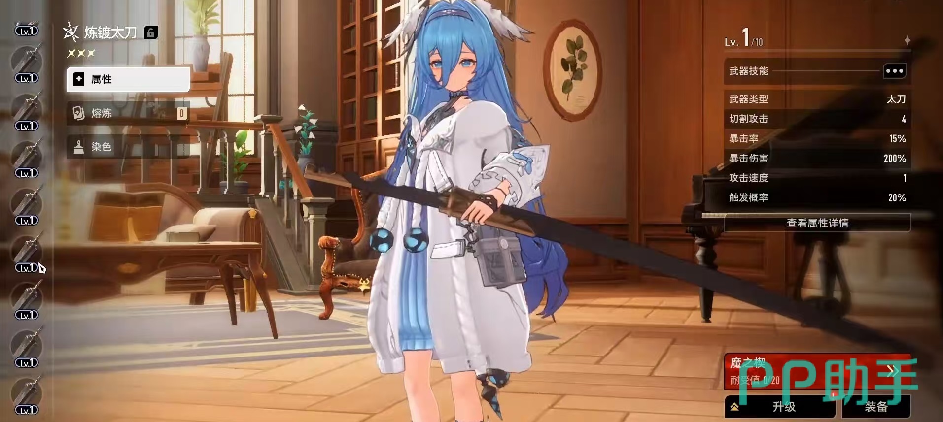 二重螺旋主打多维度武器切换与立体化战斗模式,玩家可通过完成任务或挑战获取角色碎片及锻造资源,逐步解锁心仪的装备。太刀属于高机动性的近战类型,拥有多种形态,不同款式附带专属被动效果。以“罪衍的逆鳞”为例,这是一把金色稀有度的太刀,其被动能力为下落攻击速度提升20%。每次执行下落攻击后,可叠加一层暴击率增益,每层提供10%加成,最多叠加至10层,即最高获得100%暴击率提升,持续时间为10秒。这一特性使其在持久战中具备极强的输出稳定性,适合应对高血量敌人或Boss类目标。