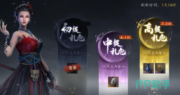 此外还有每周礼包,这里也会分成两种,一种是中级礼包价格18元,还有一个是高级礼包30元。如果是一起购买就可以享受优惠,一共是40.32元。每周礼包中所获得的奖励基本上都是令牌,也有对应的作用,通过令牌完成任务也有机会可以获得剑酒,只是获取的机会并不是很高。