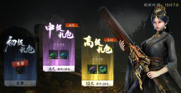目前为止剑酒,多少价格还没有曝光,但玩家就可以参考一些氪金的礼包。目前中级礼包是6元,高级礼包是12元,里面的奖励是有所区别的,如果一起购买就可以享受折扣,只需要15.12元。里面的一些奖励就可以帮助玩家去获得一些道具,有机会获取剑酒。